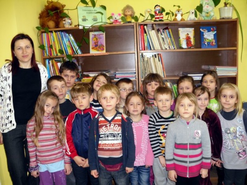 Na koniec uczniowie otrzymali słodkie upominki, zakładki do książek i naklejki. Wielu z nich wypożyczyło sobie nowe książki do czytania w domu. Bibliotekarka zaś dostała w prezencie od zerówkowiczów prace plastyczne o tematyce zimowej, które ozdobiły biblioteczną wystawę.