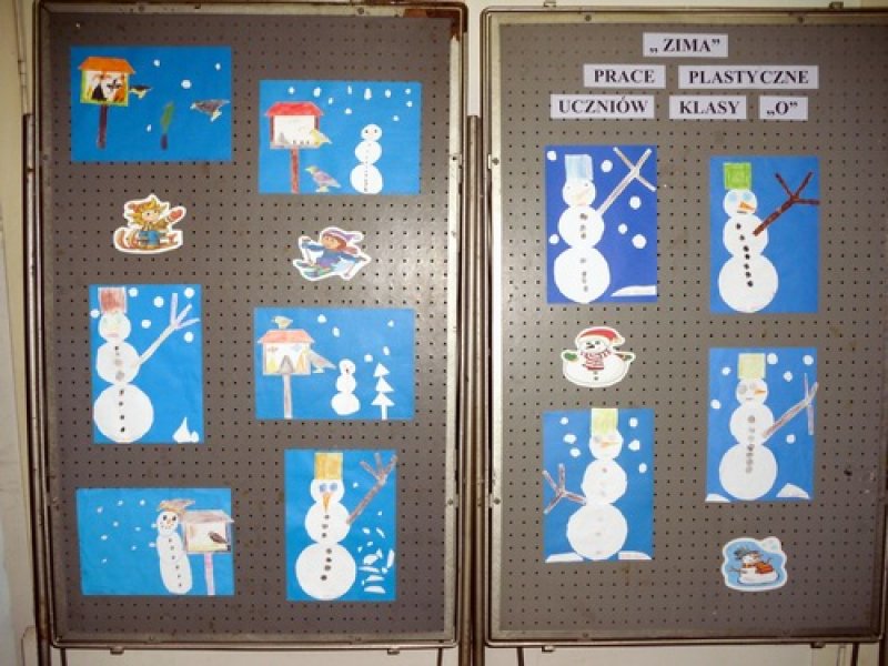 Pierwsza część zajęć poświęcona była aktualnej porze roku czyli zimie. Uczniowie słuchali wierszy o tematyce zimowej, piosenki o Bałwanku, rozmawiali z bibliotekarką na temat warunków pogodowych panujących w zimie, o zabawach i sportach zimowych, o tym jak powinno się ubierać zimową porą, a także o tym, jak pomóc ptakom i zwierzętom przetrwać tą niekorzystną dla nich porę roku. Potem uczniowie rozwiązywali zimowe zagadki, a także poznali kilka przysłów związanych z tą porą roku.