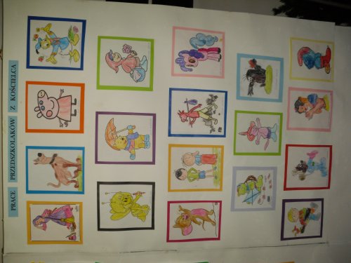 Dzieciaczki rozpoznawały swoich ulubieńców na ilustracjach, oglądały kolorowe książki z biblioteki opisujące ich przygody, z uwagą słuchały opowieści o żółwiu Franklinie, naśladowały zachowania znanych postaci z bajek, układały puzzle przedstawiające Kubusia Puchatka i jego przyjaciół, rozwiązywały słowne zagadki. Na koniec uczniowie pięknie pokolorowali bajkowe postacie, które ozdobiły biblioteczną wystawę.